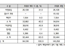 국회 농림축산식품해양수산위원회 소병훈 위원장(더불어민주당, 경기광주갑)이 해양수산부로부터 제출받은 '해양쓰레기 발생 현황'에 따르면, 해양쓰레기 발생량은 연간 14.5만 톤으로 나타나고 있으며, 육상 기인이 65%(9.5만 톤), 해상 기인이 35%(5만 톤)를 차지하고 있으나, 초목류를 제외하면 해상 기인이 60% 수준인 것으로 보고됐다.