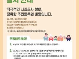 [한국뉴스타임=편집국] 포천시는 10월 6일부터 12월 28일까지 시민을 대상으로 ‘2022년 주민등록 사실조사’를 실시한다.