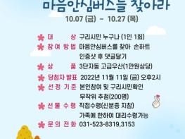 이번 이벤트는 구리시민만 1인 1회 참여 가능하며, 구리시정신건강복지센터 홈페이지를 통해 진행된다.