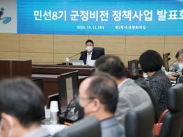 [한국뉴스타임=편집국] 서태원 가평군수는 10월 11일 민선8기 군정 비전인 “자연을 경제로 꽃피우는 도시, 가평” 실현을 위하여 군수를 비롯한 40여명의 과장급 이상 모든 간부가 한자리에 모여 각 부서에서 발굴한 정책을 발표하고 평가하는 자리를 가졌다.