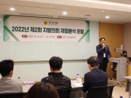 이날 포럼에는 경기도의회 예산정책위원회 윤종영(국민의 힘, 연천) 위원장, 방성환 예산정책위원(국민의힘, 성남 5)이 참석했으며 경기도의회, 부산시의회, 인천시의회, 경상남도의회, 제주특별자치도의회 등 5개 시?도의회사무처 예산분석 관계자 등 30명이 참석한 가운데 1박2일으로 경기도 광주시 소재 곤지암리조트에서 '2022년 제2회 지방의회 재정분석 포럼'을 개최했다.