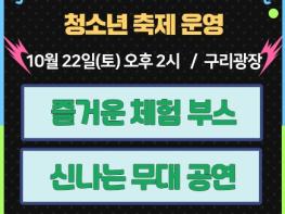 [한국뉴스타임=편집국] 구리시청소년재단의 구리시청소년수련관(관장 추은아)은 10월 22일 오후 2시부터 구리광장에서 구리시 대표 청소년축제인 “구리시청소년어울림마당-시끌벅적골목축제”를 운영한다.