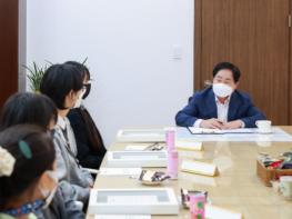 코로나19 확진으로 인해 약 일주일간의 자가 격리를 마치고 이날 대면 업무에 복귀한 주광덕 시장은 위촉식에서 1기로 위촉된 ‘1일 명예시장’ 학생 9명에게 위촉장을 수여하고, 학생들과 편안한 분위기 속에서 남양주시의 어린이·청소년에 대한 정책과 미래 비전에 관해 의견을 공유하는 시간을 가졌다.
