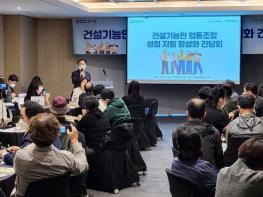 건설인, 건설직종 교육생과 관계자 50여 명이 참석한 이날 간담회에서는 건설 협동조합 운영 사례 소개, 건설 전문인을 통한 상담을 통해 사업 모델과 설립 방향 등을 논의했다.