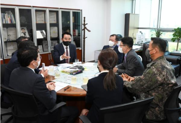백영현 포천시장은 포천시의회 서과석 의장, 연제창 부의장, 임종훈 운영위원장과 함께 국방부 군사시설기획관 등 국방부 관계자를 만나 시의 입장을 전달하고 심도있는 논의를 진행했다.