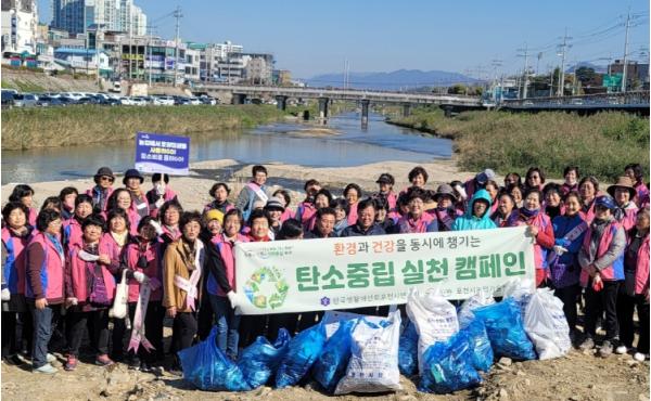 [한국뉴스타임=편집국] 포천시 여성농업인단체인 한국생활개선포천시연합회는 지난 19일 생활개선회 임원 및 회원 80명이 참석한 가운데 포천천 일대에서 탄소중립 실천 EM흙공던지기 및 줍깅 캠페인을 진행했다.