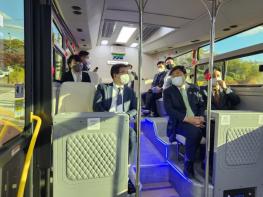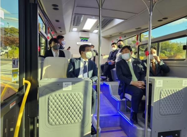 [한국뉴스타임=편집국] 염태영 경기도 경제부지사는 25일 성남 판교 차세대융합기술연구원 경기도자율주행센터에 방문해 자율협력주행버스를 시승했다.