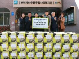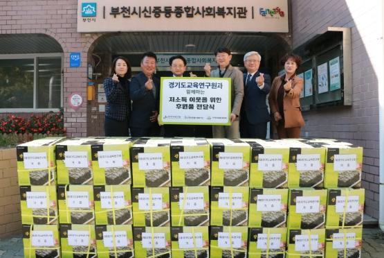 경기도교육연구원(원장 박정일)은 25일 부천 신중동 종합사회복지관에서 저소득 독거노인, 장애인 가정 지원을 위한 후원물품 전달식을 개최했다.