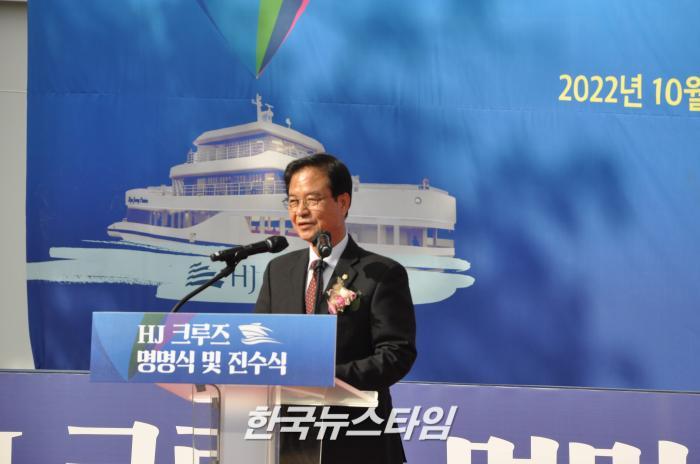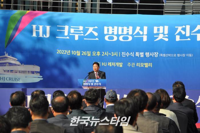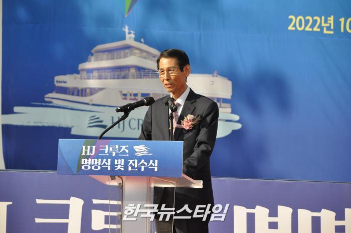 개최 된 이날 ‘HJ크루즈’ 진수식은 개회선언, 사업경과보고, 명명식, 기념사, 문화체육관광부 장관 표창 및 감사패 전달, 축사, 진수 테이프 커팅식순으로 진행되었다.