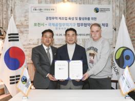 [한국뉴스타임=편집국] 포천시는 지난 26일 서울특별시 종로구에 소재한 페어트레이드 센터에서 국제공정무역기구 한국사무소(대표 지동훈)와 상생협력, 포천시 공정무역 제조업체 육성, 공정무역 활성화를 목적으로 업무협약을 체결했다.