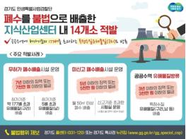 경기도 특사경은 10월 4일부터 21일까지 지식산업센터가 밀집한 수원·화성·안양·군포·의왕·부천·김포·성남·하남 총 9개 시의 지식산업센터 내 폐수 배출 사업장 120개소를 중점 단속한 결과, 물환경보전법을 위반한 14개소를 적발했다고 3일 밝혔다.