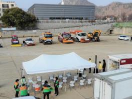 이번 훈련은 폭설대응 제설장비 기능 조작 훈련뿐 아니라 도로가 전기차 방전 상황을 설정하여 이동불가에 따른 견인 조치 훈련도 실시했다.