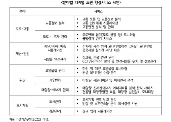 [한국뉴스타임=편집국] 경기도 현실 세계를 디지털의 가상 세계에 동일하게 복제해 구현하는 기술로 디지털 트윈 도입을 통해 데이터 기반의 행정업무의 효율화와 지역 현안 문제 해결을 위한 새로운 정책 대안 마련이 필요하다는 연구 결과가 나왔다.