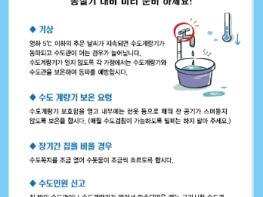 문구 내용은 ▲수도계량기통 내부 헌옷 등으로 보온조치 하기 ▲장기간 집을 비울 땐 수도꼭지 살짝 틀어놓기 ▲계량기나 배관 동결 시 따뜻한 물이나 드라이기로 녹이기 등이다.