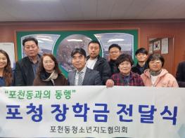 [한국뉴스타임=편집국] 포천시 포천동 청소년지도협의회는 지난 10일 관내 중·고등학교에 재학 중인 저소득 가정의 학생 22명에게 ‘포청장학금’으로 총 220만 원을 전달했다.