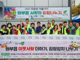 이번 와부읍 ‘사랑의 김장김치 나눔’행사는 와부읍 새마을지도자회·새마을부녀회가 주관하고 지역사회보장협의체, 아파트 생활개선회 등이 협력해 진행됐으며, 직접 수확한 배추와 무를 사용해 절이고 버무리며 이웃 사랑의 마음을 듬뿍 담았다.