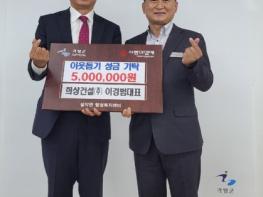 [한국뉴스타임=편집국] 희상건설㈜ 이경범 대표는 지난 11월 15일 설악면 행정복지센터를 방문하여 어려운 이웃들에게 전달해 달라며 이웃돕기 성금 500만원을 기탁했다.