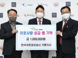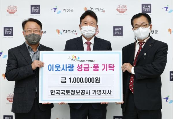 [한국뉴스타임=편집국] 가평군은 11월 21일 ‘한국국토정보공사 가평지사’에서 연말을 맞아 어려운 이웃을 위해 써달라며 이웃돕기 성금 100만원을 군에 기탁하여 전달식을 가졌다고 밝혔다.