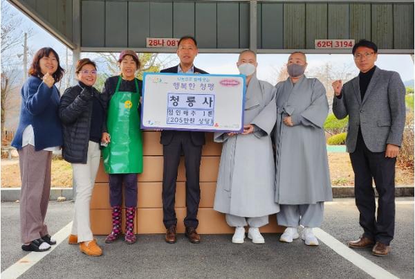 [한국뉴스타임=편집국] 가평군 청평면은 21일 청룡사에서 이웃돕기 물품으로 절인배추 1ton을 기탁했다고 밝혔다.