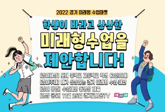 [한국뉴스타임=편집국] 경기도교육청은 학생이 미래형 수업에 대한 바람과 의견을 직접 제안하는 ‘2022 경기 미래형 수업 마켓’을 연다.