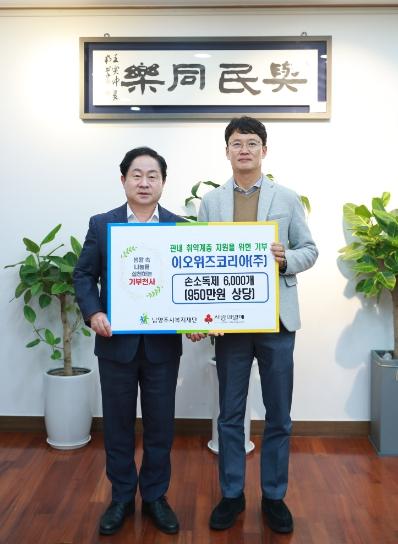 이오위즈코리아㈜ 김진홍 대표는 “겨울철 코로나19 재유행이 시작되면서 지역 어르신들이 건강하게 겨울을 보내셨으면 하는 마음에 기부하게 됐다.”라며 “앞으로도 도움이 필요한 곳이 있다면 적극적으로 도울 수 있도록 노력하겠다.”라고 밝혔다.