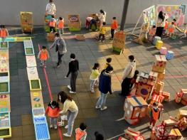 또한, 종이 박스, 플라스틱병, 비닐 등 우리 주변에서 흔히 볼 수 있는 폐재료를 활용해 놀이로 체험할 수 있는 팝업 놀이터 ‘업사이클링 놀이터’가 지난 24일부터 26일까지 3일간 총 21회 운영됐으며, 영유아들은 버려지는 재료들이 새활용된 놀잇감으로 소리, 촉감 등의 감각 체험과 박스 젠가, 고리 던지기, 뮤직 플레이 존 등 다양한 신체 활동 체험을 자율 놀이로 경험했다.