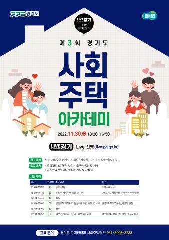 [한국뉴스타임=편집국] 경기도는 11월 30일 사회적 경제주체의 공유자산 추진사례 및 공동주택 커뮤니티 활성화 사례 등을 교육하기 위한 ‘제3회 사회주택 아카데미’를 온라인 비대면으로 개최한다.