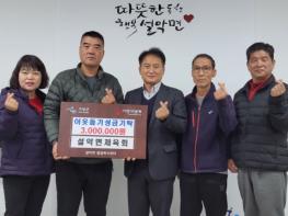 이에 이범주 설악면장은 “관내 어려운 이웃을 위해 선뜻 큰 금액의 성금을 쾌척해 주신 설악면 체육회에 감사 인사를 전한다”라고 하며 “관내 복지사각지대 취약계층이 발생하지 않는 따뜻한 동행 행복설악면을 만들어 나가도록 하겠다”라고 화답했다.
