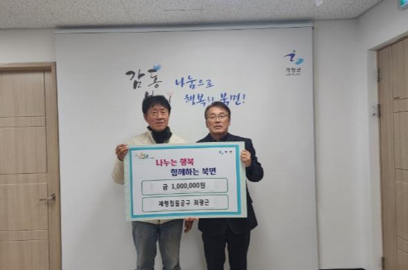 이에 이진모 북면장은 “추운 겨울 저소득 계층을 위해 몸소 나눔을 실천해 주신 최광근 대표께 깊이 감사드리며, 성금은 필요한 곳에 어려운 이웃을 위하여 사용하여 힘든 시기를 이겨내는데 힘이 되도록 사용하겠다” 하고 전했다.