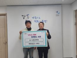 [한국뉴스타임=편집국] 지난 12월 1일 오후 2시 제령철물공구 최광근 대표는 북면행정복지센터에 방문하여 성금 1백만원을 기탁했다.