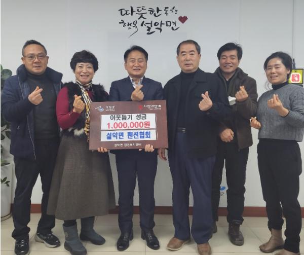 [한국뉴스타임=편집국] 지난 12월 6일 설악면 펜션협회는 설악면 행정복지센터를 찾아 이웃돕기 성금 100만원을 전달했다.