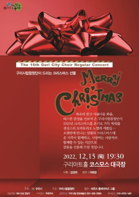 [한국뉴스타임=편집국] 구리시에서는 구리시립합창단이 오는 12월 15일 19:30부터 90분간 구리아트홀 코스모스 대극장에서 제16회 정기연주회 를 개최한다고 밝혔다.
