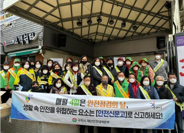 [한국뉴스타임=편집국] 구리시는 9일 구리전통시장 앞에서 시 공무원, 안전보안관, 자율방재단, 의용소방대 등 30여 명이 참여한 가운데 대한민국 안전大전환을 위한 12월 안전점검의 날 캠페인을 실시했다.