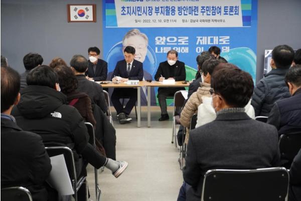 [한국뉴스타임=편집국] 더불어민주당 안산단원을 지역위원회는 지난 10일 오후 안산시 단원구에 위치한 김남국 국회의원 지역사무소에서 초지시민시장 부지활용 방안마련을 논의하는 주민참여 토론회를 개최했다.
