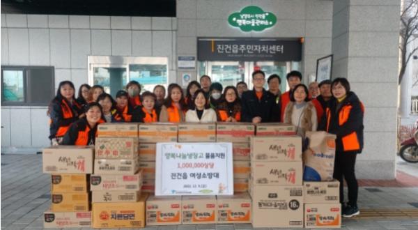 [한국뉴스타임=편집국] 남양주시 진건읍 주민자치회(회장 김태완)는 지난 9일 진건읍 여성소방대에서 취약계층을 지원하기 위해 진건읍 행복마을관리소의 행복나눔냉장고 사업에 100만 원 상당의 물품을 후원했다고 13일 밝혔다.