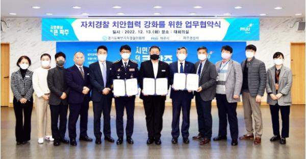 신현기 경기도북부자치경찰위원장은 13일 오후 파주시청에서 김경일 파주시장, 이재성 파주경찰서장과 함께 ‘자치경찰 치안협력 강화를 위한 업무협약’을 체결하며 기초지자체-경찰서간 협력을 더욱 공고히 했다.