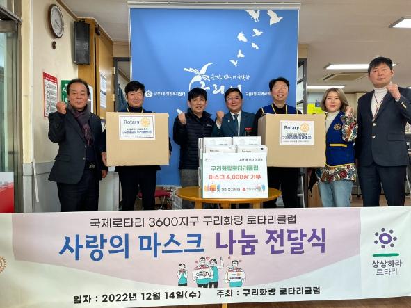 구리화랑로타리클럽 신현승 회장은 “회원들이 정성껏 마련한 마스크가 어려운 분들에게 조금이라도 도움이 되기를 희망한다. 앞으로도 지역사회의 어려운 이웃을 위한 일에 앞장설 수 있도록 함께 하겠다.”고 말했다.