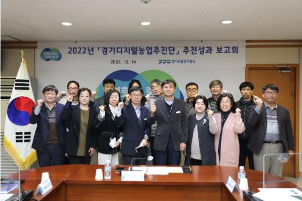 이번 보고회는 농업촌진흥사업 전 분야의 디지털농업 촉진을 위한 자리로, 추진단장인 연구개발국장을 비롯한 경기도농업기술원 연구개발?기술보급국 과장, 연구소장 등이 참석하여 2022년 추진성과를 점검하고 2023년 추진방향을 모색하기 위해 마련됐다.