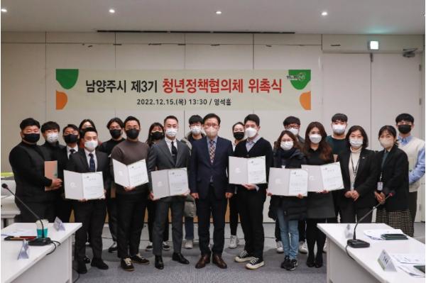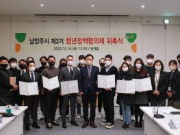[한국뉴스타임=편집국] 남양주시는 지난 15일 시청 제1청사 영석홀에서 ‘2022년 제3회 청년정책협의체 위촉식’을 열고 자유롭고 적극적인 청년정책 활동을 이끌어갈 남양주시 청년 23명에게 위촉장을 수여했다.
