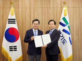 [한국뉴스타임=편집국] 김동연 경기도지사가 22일 도청 집무실에서 김세용 전 서울주택도시공사 사장을 신임 경기주택도시공사(GH) 사장에 임명했다.