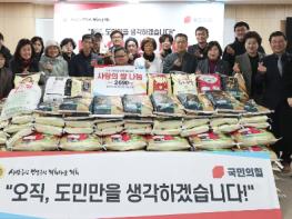 [한국뉴스타임=편집국] 경기도의회 국민의힘이 27일 연말을 맞아 소외계층과 온정을 나누기 위한 ‘경기미 나눔 행사’를 열고, 나눔문화 확산에 앞장섰다.