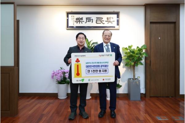 대한민국헌정회공익재단(이사장 김병태)은 29일 남양주시 내 저소득 아동·청소년에게 장학금을 지원하기 위해 후원금 1천만 원을 남양주시복지재단(대표이사 심우만)에 전달했다.