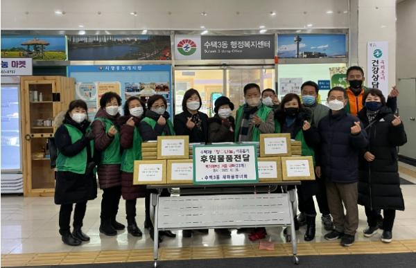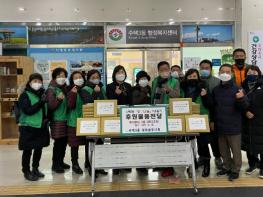 [한국뉴스타임=편집국] 구리시 수택3동 행정복지센터(동장 이영희)는 지난 28일 수택3동 새마을부녀회(회장 최영숙)의 후원으로 독거어르신을 위한 겨울나기 지원물품(내복) 전달식을 개최했다.