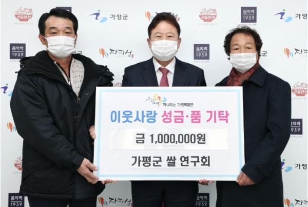 [한국뉴스타임=편집국] 1월 4일, ‘가평군 쌀 연구회’에서는 새해를 맞아 소외되고 어려운 이웃들이 건강하고 따뜻한 겨울을 보낼 수 있도록 이웃돕기 성금 1백만 원을 군에 기탁하여 전달식을 가졌다.