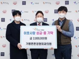 이날 전달식에 참석한 가평 튼튼 정형외과의원 이동주 원장은 “명절을 앞두고 치솟는 물가와 지속되는 한파로 더욱 힘든 시기를 보내고 있는 우리 이웃들에게 조금이나마 도움이 되기를 바라는 마음으로 성금을 전달하게 됐다”며 “추운 겨울 이웃들이 넉넉하고 따뜻한 명절을 보내기를 바란다”고 말했다.