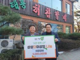 [한국뉴스타임=편집국] 남양주시 별내동 소재 허참갈비는 18일 설 명절을 앞두고 지역 내 저소득 취약계층을 지원하기 위한 후원금 500만 원을 별내동 지역사회보장협의체에 지정 기탁했다.