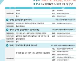 3부는 가톨릭대 서울성모병원 박주현 교수를 좌장으로 주제 발표에 대한 종합토론을 진행할 예정이다. 종합토론은 ▲장애계 및 발달 장애 부모가 바라는 발달장애인 건강보건통계와 ▲장애인 건강정책 목표 달성을 위한 장애인 건강보건통계 전망에 대해 집중 논의할 예정이다.