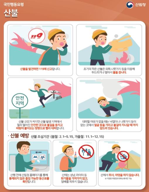 요즘처럼 산불 발생 위험이 높은 시기에는 산불 예방을 위해 다음과 같은 안전수칙을 잘 지켜야 한다.