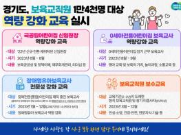 [한국뉴스타임=편집국] 경기도가 어린이집 보육 교직원의 전문성과 역량을 강화하기 위해 장애 영유아 보육교사 전문성 강화 등 4개 교육사업을 약 1만 4천 명을 대상으로 진행한다고 20일 밝혔다.