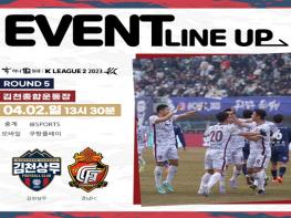 김천상무프로축구단이 2일 오후 1시 30분, 김천종합운동장에서 ‘하나원큐 K리그2 2023’ 5R 경남FC와 홈 개막전을 치른다. 김천은 홈 경기장 천연잔디 유지보수로 인해 3월 K리그2 개막 이후 줄곧 원정 경기를 치렀다. 4월에서야 홈 개막전을 치르는 김천은 늦은 만큼 더욱 다양한 볼거리와 즐길거리로 팬들을 맞는다.